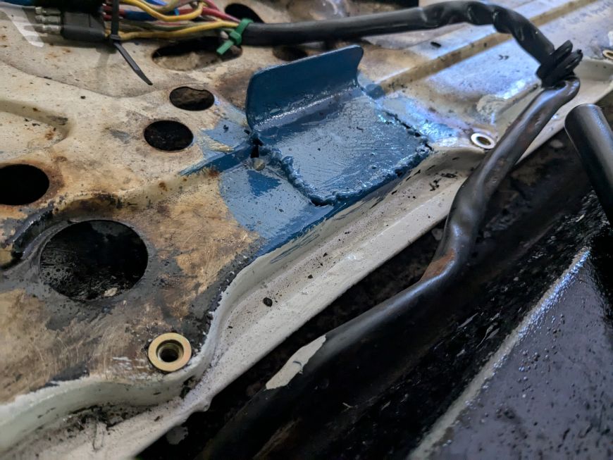 Before I painted it though, I applied some Por-15 to the inside, then sanded a little off so I could weld in some reinforcing plates (after spraying everything in weld through primer).