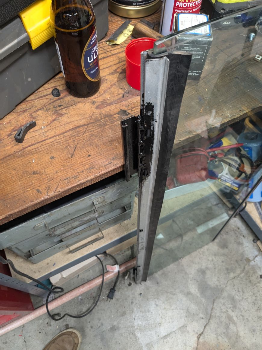 Almost ready to put the glass back in! But still lots more work to do. When I took the panel off, it was a huge PITA because every bolt was seized shut. I could get a few of them off after lots of propane heat and the use of a hammer driver and a sledge hammer. But after two captive nuts broke loose, I ended up cutting the heads off all of the bolts. Then with the panel removed a hammer and a punch easily removed the captive nuts.