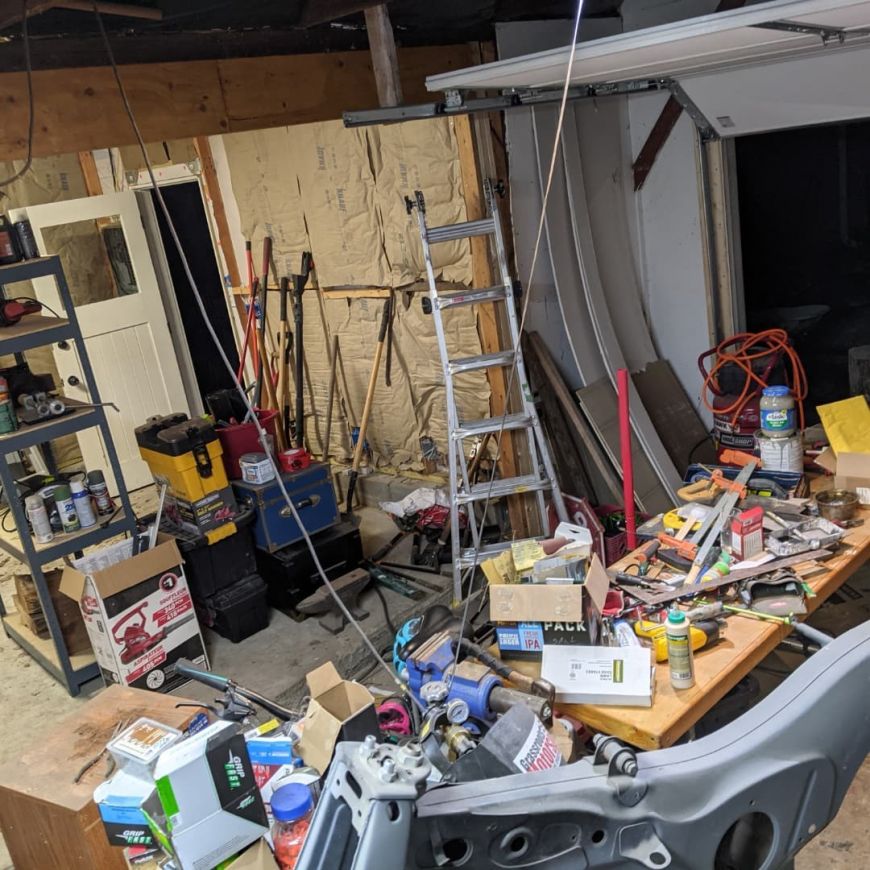 However my first challenge was just cleaning up the MESS that I had made during the construction process. (You can also see the R-14 insulation in the stud bays).