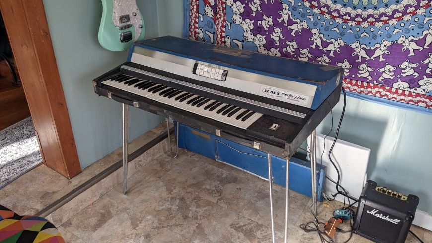 I was given this RMI Electra 300a electronic piano. It is not just electric, like an electric guitar or like a wurlitzer electric piano, it is full-on electronic. There are no mechanical parts creating the sounds, instead there is an oscillating circuit for each individual note.
