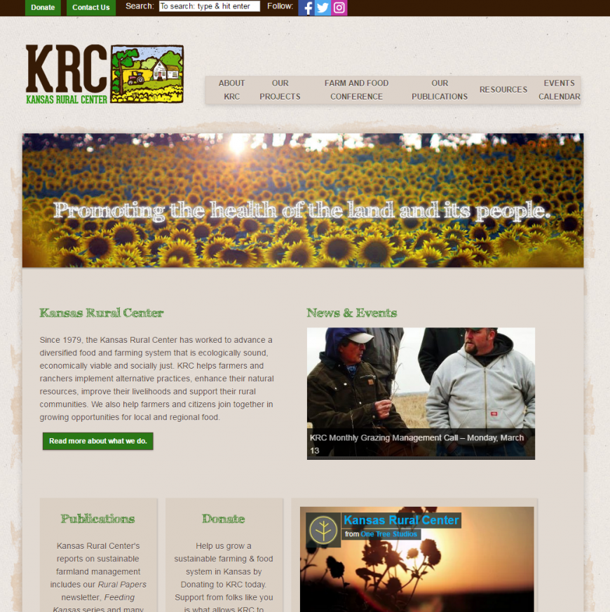 The newly-renovated website for the Kansas Rural Center is complete! Head on over to https://kansasruralcenter.org/ to check it out. Shout out to Joanna, what an awesome lady to work with!