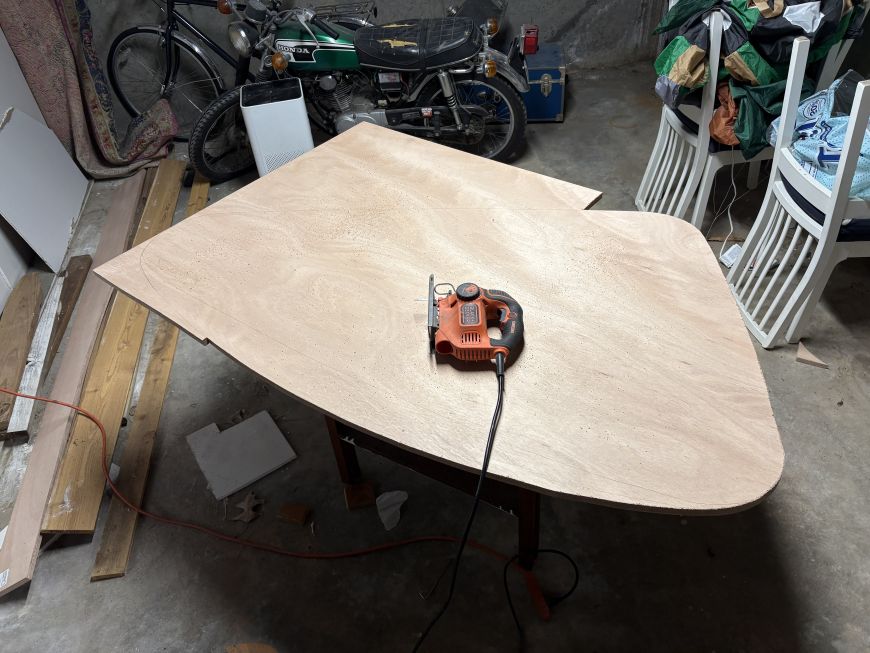 I transferred the shape to the plywood with a pencil then began cutting it out with a jigsaw: